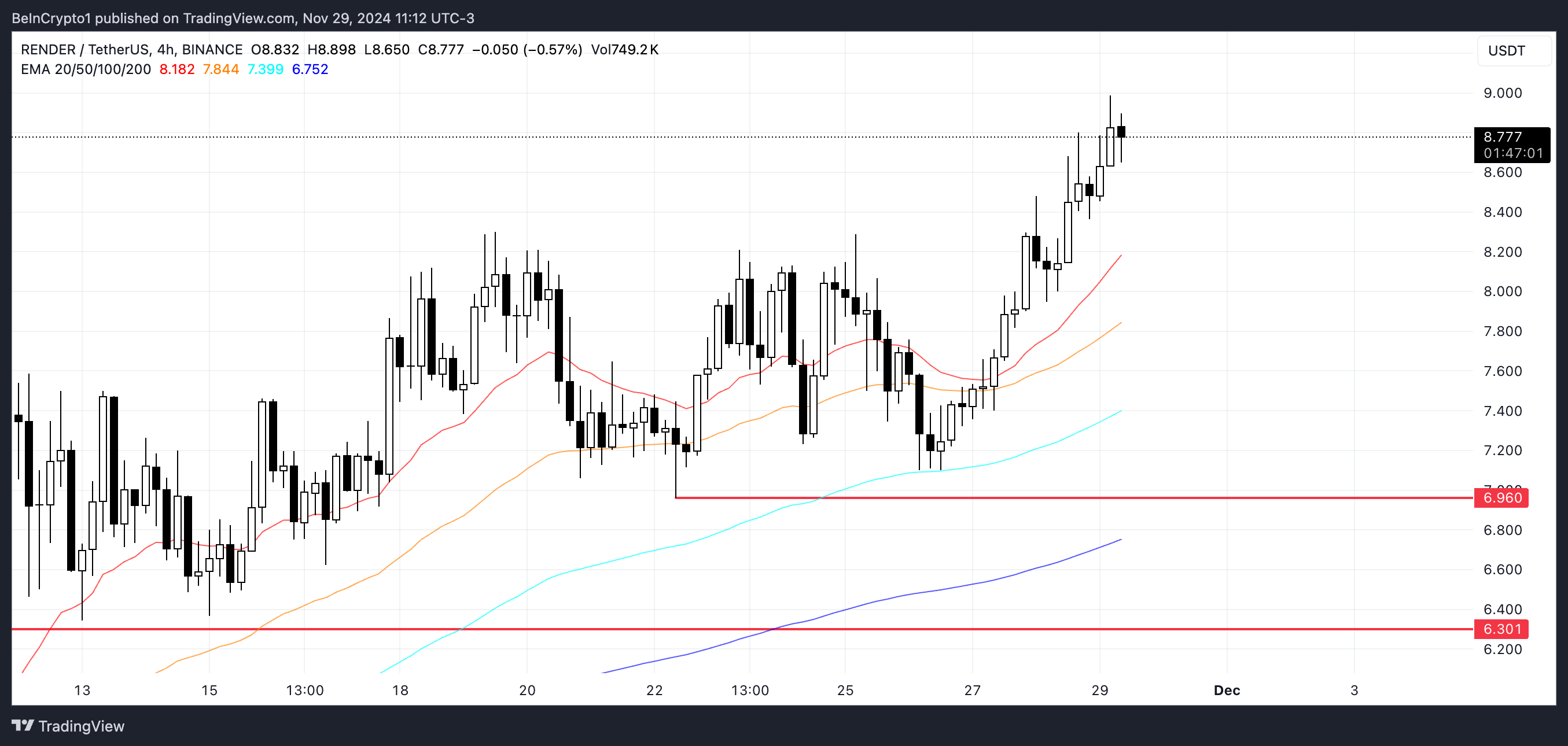 Als deze trend zich voortzet, kan RENDER profiteren van de toegenomen adoptie en interesse, en mogelijk de groei van Bitcoin overtreffen, terwijl het zijn opwaartse traject in december voortzet.
