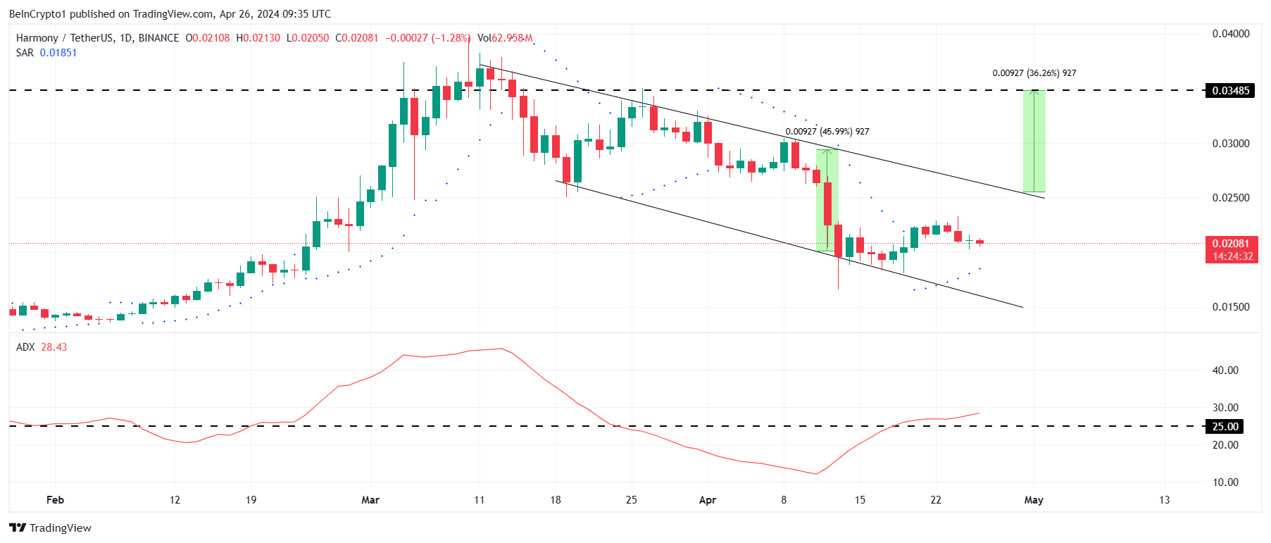 SponsoredWe zien dat de populaire altcoin in een dalende wig beweegt en een breakout uit dezelfde wig zou kunnen plaatsvinden in de komende maand. Op basis van dit patroon zou ONE dus met meer dan 36% kunnen stijgen om het koersdoel van $0,034 te raken. Dit zou een 2-maandelijkse high markeren.