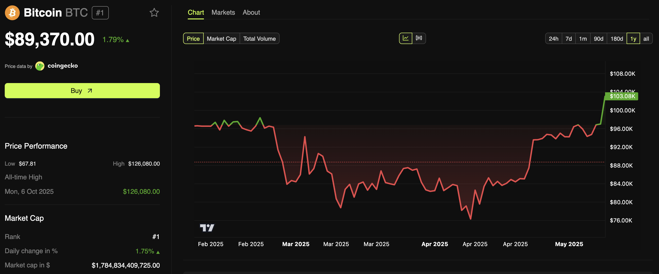 Op het moment van schrijven werd Bitcoin verhandeld voor $109.640, een stijging van 1,35% in de afgelopen 24 uur.