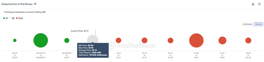 Een andere dwingende reden is dat 1,64 miljard ARB’s op het punt staan winstgevend te worden. Volgens de Global In/Out of the Money (GIOM) indicator staat dit aanbod met een waarde van meer dan $1,8 miljard op het punt om winst op te leveren voor zijn investeerders.