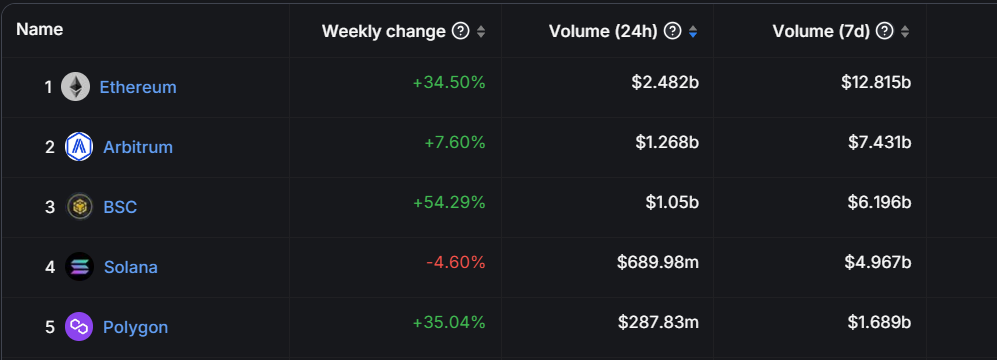 Terwijl het Ethereum DEX-volume zijn leidende positie heeft heroverd, onderstreept deze data de snelle groei van de Layer-2 blockchain.