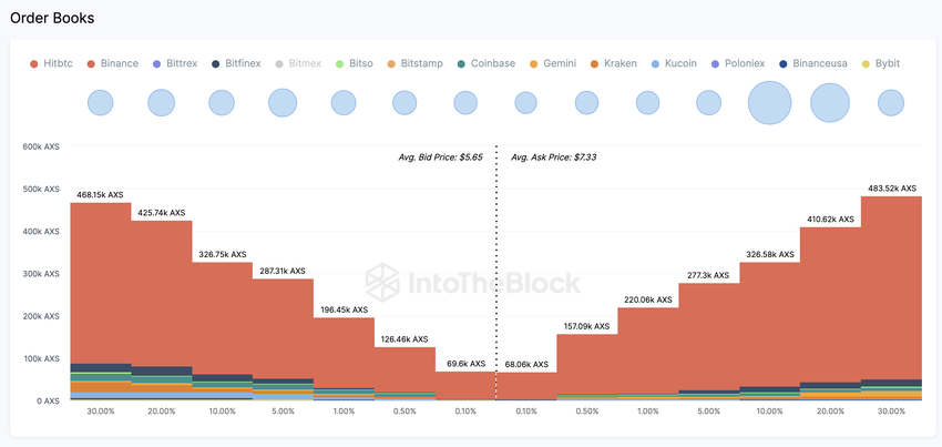 Zoals hieronder te zien is, hebben investeerders van het toonaangevende Play-2-Earn project actieve orders geplaatst. Het gaat hierbij om de verkoop van maar liefst 1,94 miljoen AXS tokens. Opmerkelijk is dat de 1,94 miljoen AXS verkooporders veel groter zijn dan de totale actieve kooporders die momenteel 1,83 miljoen AXS bedragen.