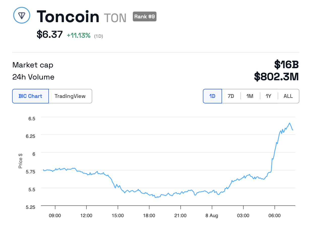 “Binance, ‘s werelds grootste cryptocurrency exchange, heeft de notering van TONcoin (TON) aangekondigd, met handel die begint op 8 augustus 2024 om 10:00 UTC,” verklaarde de aankondiging .