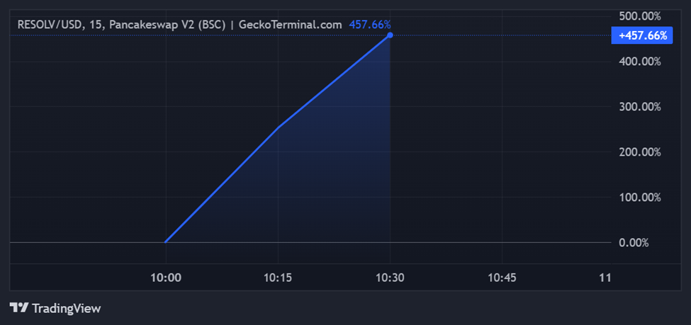 Na deze noteringsaankondiging steeg de RESOLV token koers met bijna 460% op GeckoTerminal, een decentralized exchange (DEX) aggregator.