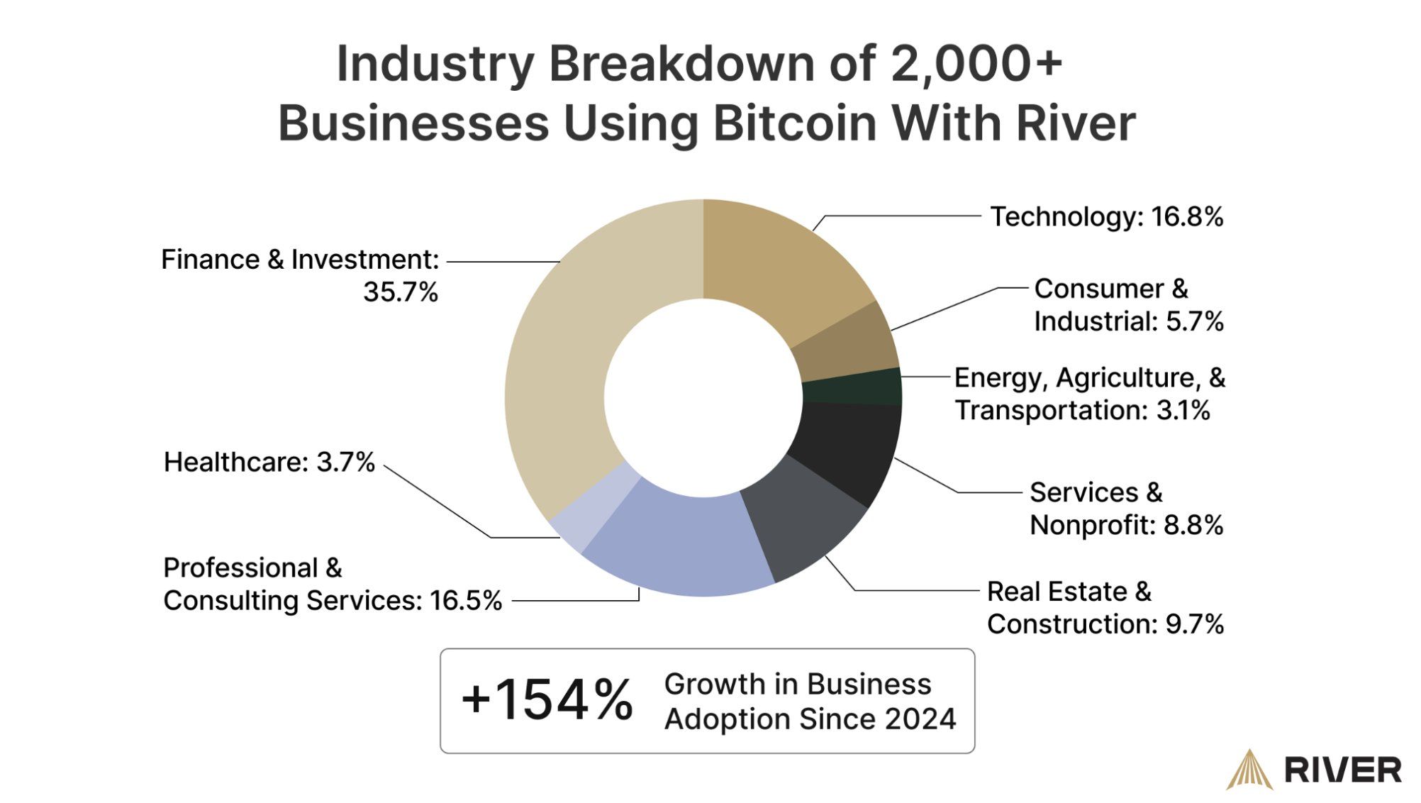 Volgens de statistieken van River gebruiken meer dan 2.000 bedrijven het platform om Bitcoin te accumuleren, een indrukwekkende groei van 154% sinds 2024.