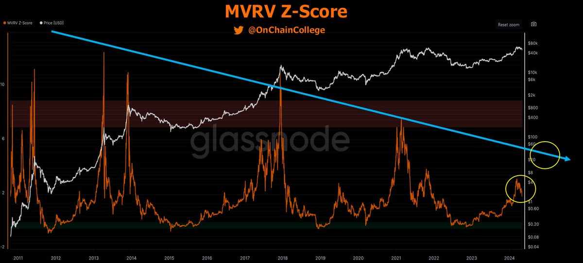 On-Chain College biedt een ander interessant perspectief en suggereert dat de huidige marktstatus consolidatie is op basis van de MVRV Z-Score. Deze periode van ‘adempauze’ is essentieel, omdat het de minder toegewijde investeerders weghaalt en de weg vrijmaakt voor meer robuuste groei.