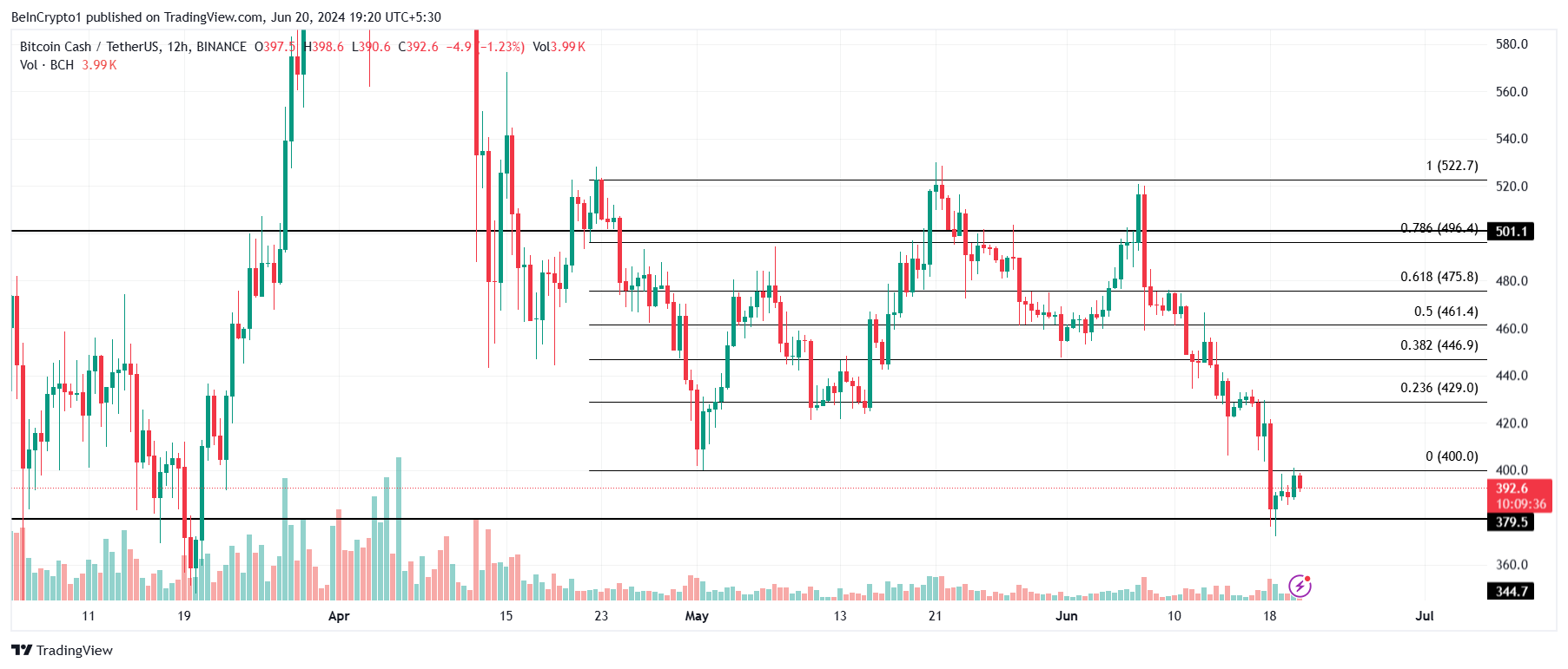 De Bitcoin Cash koers staat momenteel op $392 en zou de komende dagen boven de $400 kunnen sluiten. Maar voor een herstelrally zou de altcoin boven de $420 of $430 moeten sluiten.