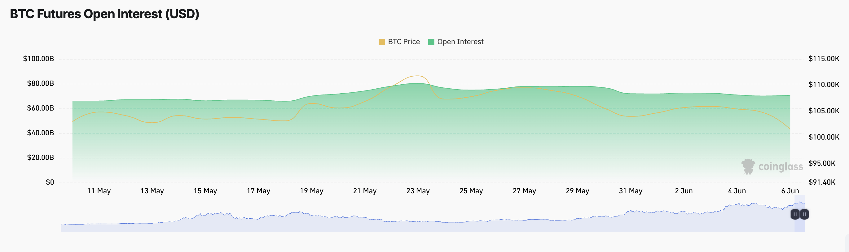 Open interest verwijst naar het totale aantal openstaande derivatencontracten, zoals futures of opties, die nog niet zijn afgewikkeld. Wanneer het daalt, sluiten handelaren bestaande posities, wat wijst op verminderde marktdeelname. Dit brengt BTC in gevaar voor verdere koersdalingen.