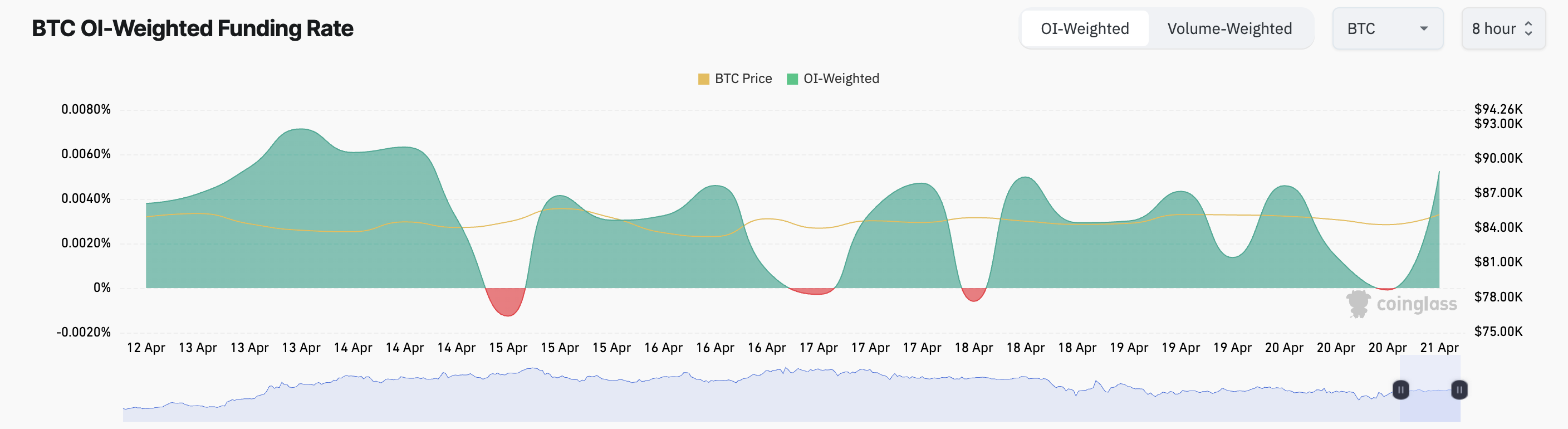 Wanneer de funding rate positief is zoals dit, betalen long traders shorts, wat aangeeft dat bullish sentiment domineert en de vraag naar longposities hoger is.