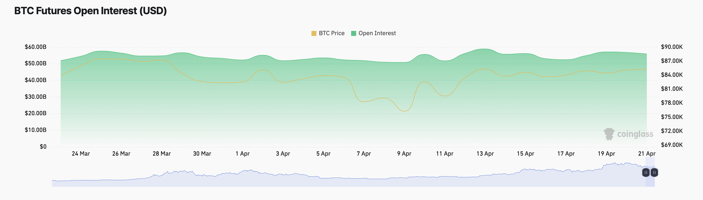 De open interest van een asset verwijst naar het totale aantal uitstaande futures- of optiecontracten die niet zijn vereffend of gesloten. Wanneer het daalt tijdens een koersrally, suggereert het dat handelaren hun posities sluiten in plaats van nieuwe te openen, wat wijst op een gebrek aan sterke overtuiging voor een aanhoudende koersrally.