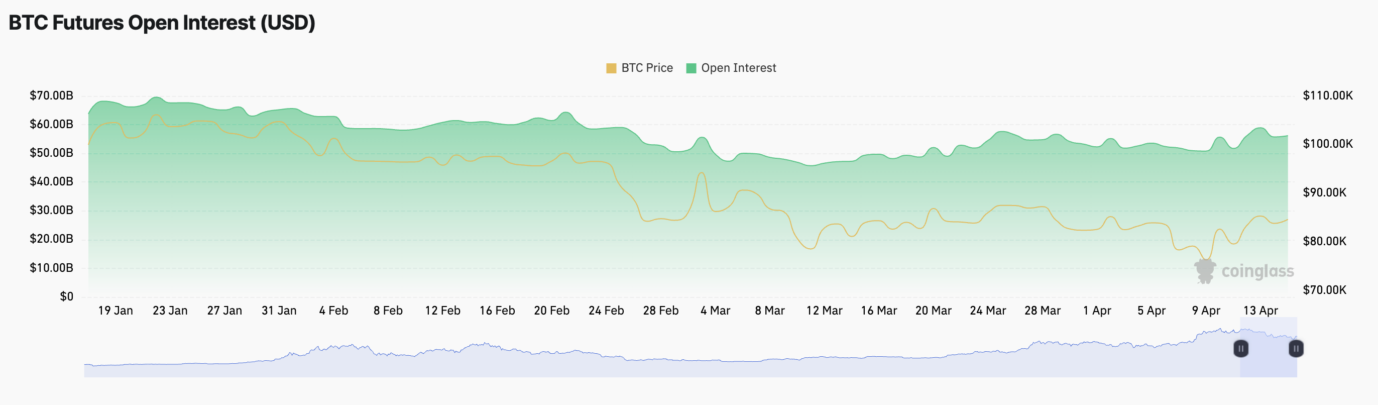 De open interest van BTC-futures verwijst naar het totale aantal openstaande futurescontracten dat nog moet worden afgewikkeld. Wanneer het stijgt tijdens een koersstijging zoals deze, suggereert het dat er nieuw geld de markt binnenkomt om de opwaartse beweging te ondersteunen, wat mogelijk het bullish momentum versterkt.