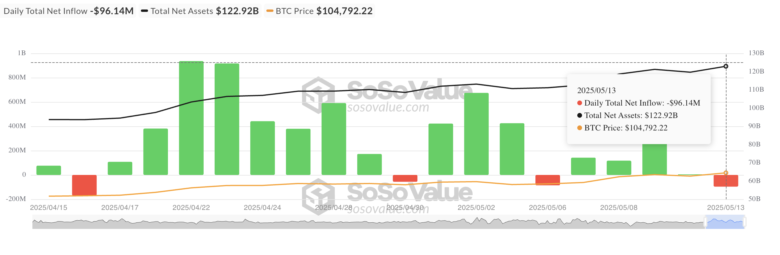 SponsoredDeze daling verontrustte waarschijnlijk institutionele investeerders, van wie velen hadden gewacht om te zien of de coin momentum kon opbouwen boven de $105.000, vooral te midden van recente signalen van vooruitgang in de handelsrelaties tussen de VS en China.