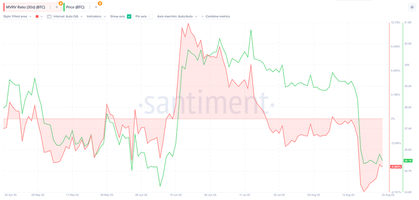 Zoals te zien is in de MVRV grafiek hieronder, kunnen de meeste investeerders die BTC kochten in de afgelopen 30 dagen 6,4% verdienen als ze vroeg verkopen.