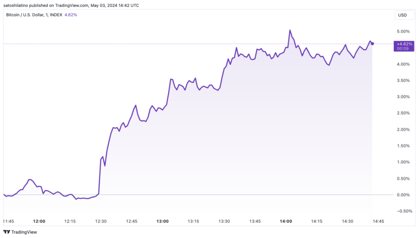 Ondanks deze gemengde signalen was de reactie van de markt onverwacht positief. Bitcoin steeg snel boven de kritische grens van $60.000 en bereikte een intraday high van $62.150 op het moment van schrijven.