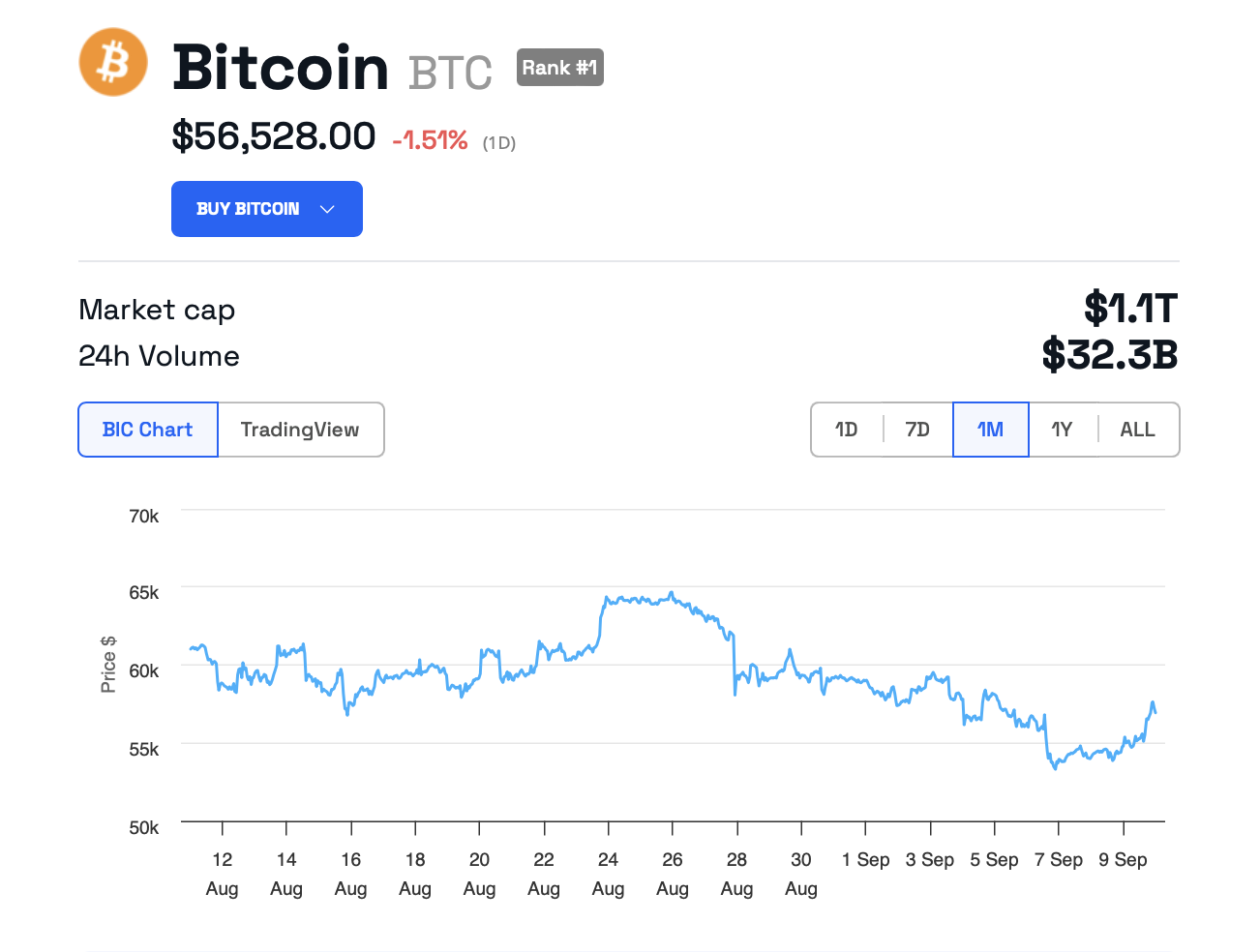 Gegevens van BeInCrypto tonen aan dat Bitcoin momenteel wordt verhandeld voor $56,528, een daling van 1,51% sinds de sessie op woensdag begon.