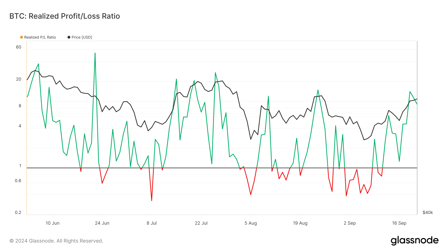 In de afgelopen dagen zijn investeerders begonnen met het verkopen van hun Bitcoin-bezittingen, wat blijkt uit de stijgende gerealiseerde winst/verliesratio. Deze metriek, die de winstgevendheid van on-chain verplaatste coins meet, is de laatste tien dagen gestegen na een terugkeer uit de negatieve zone.