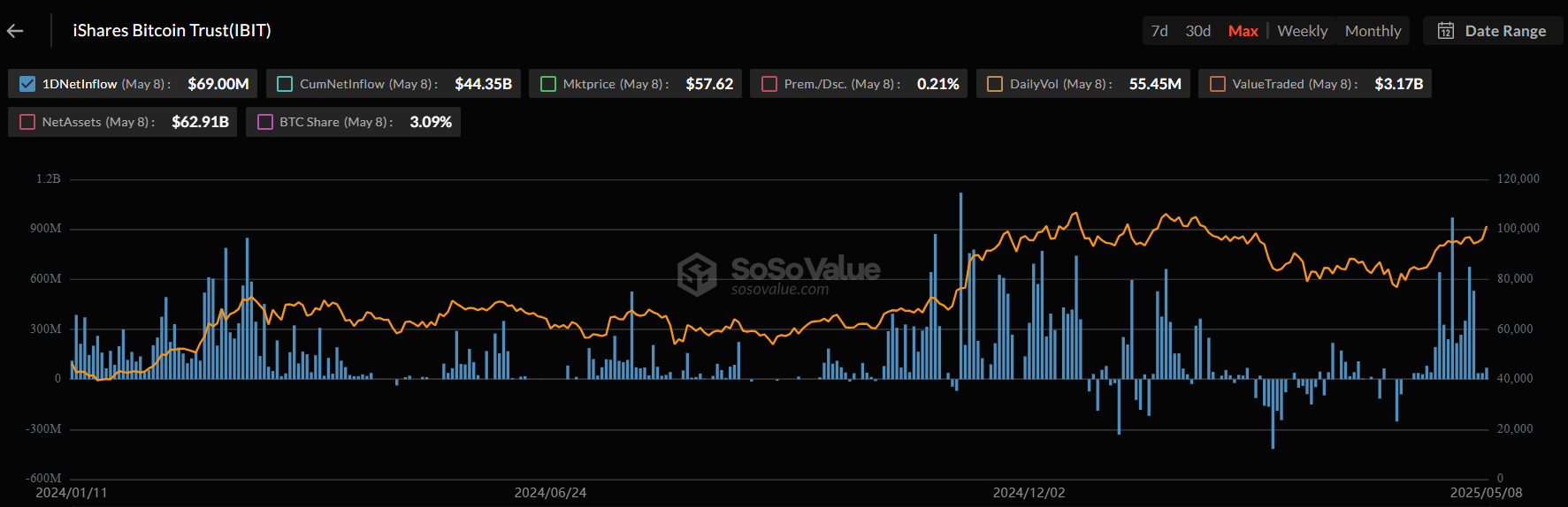 Ondanks deze waarschuwingen blijft IBIT de grootste spot Bitcoin ETF op de markt. Het heeft 19 opeenvolgende dagen van instromen geregistreerd, met meer dan $5,1 miljard tijdens de rapportageperiode.