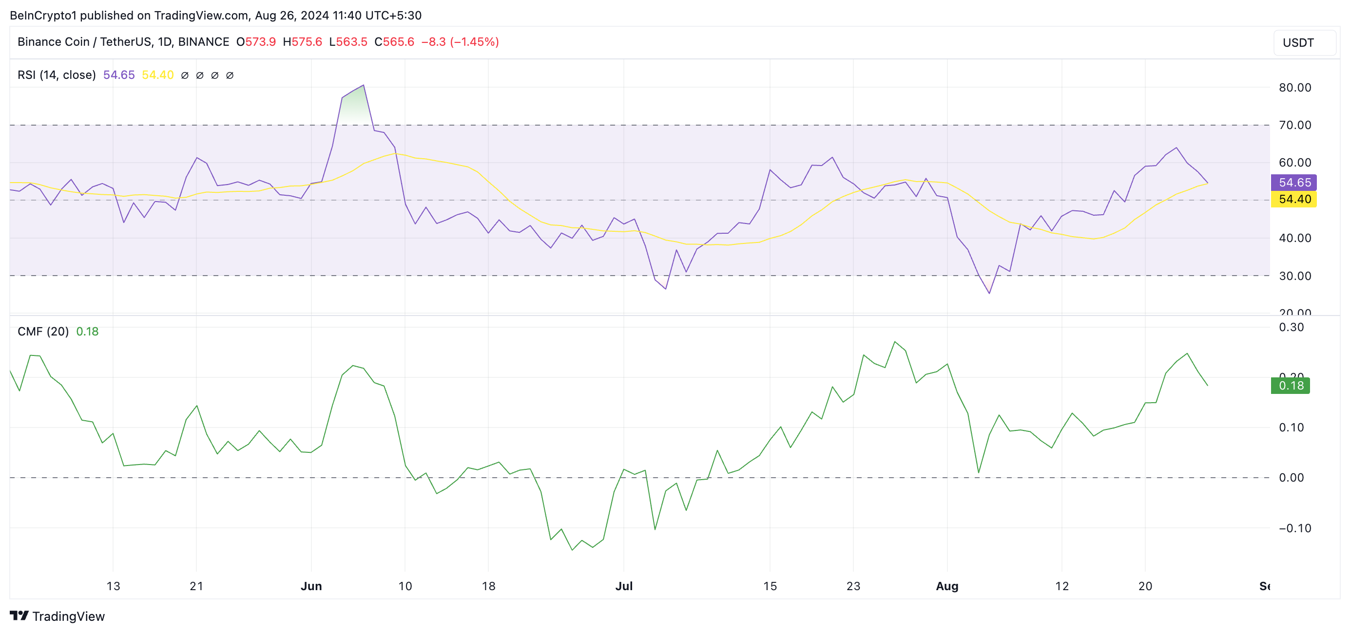 Aan de andere kant, als de hertest mislukt en de ondersteuning het niet houdt, zou BNB terugvallen onder de dalende trendlijn, waarschijnlijk dalend naar $522.90. De uitkomst van deze hertest zal cruciaal zijn voor BNB’s volgende zet.