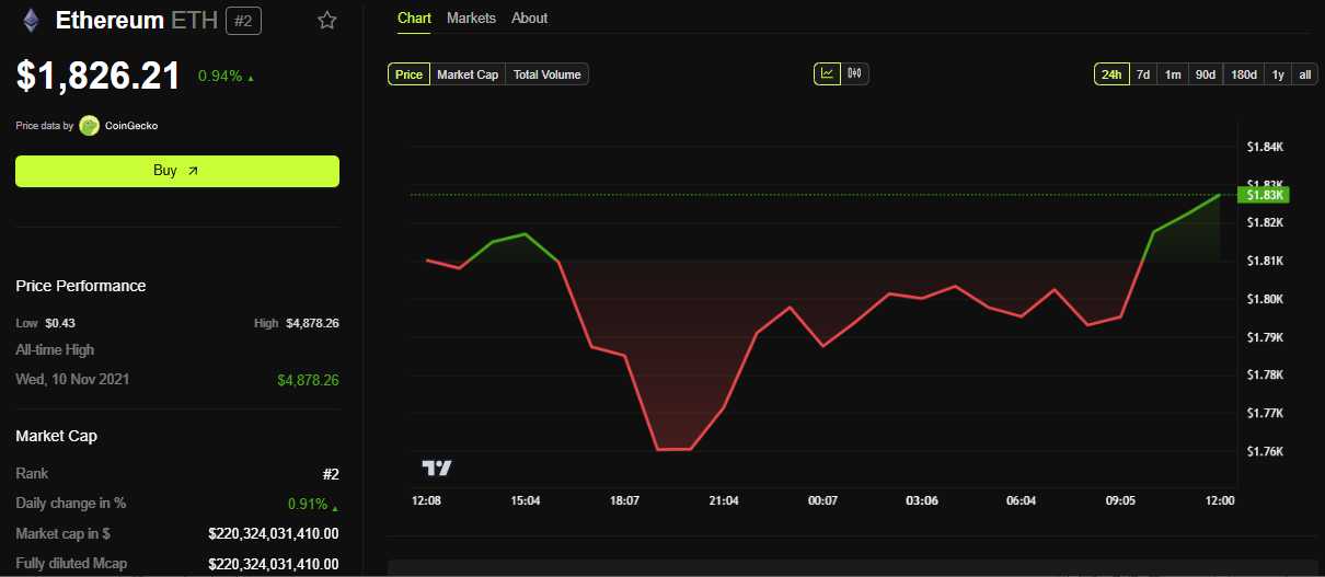 Ethereum (ETH) Koers Prestatie. Bron: BeInCrypto