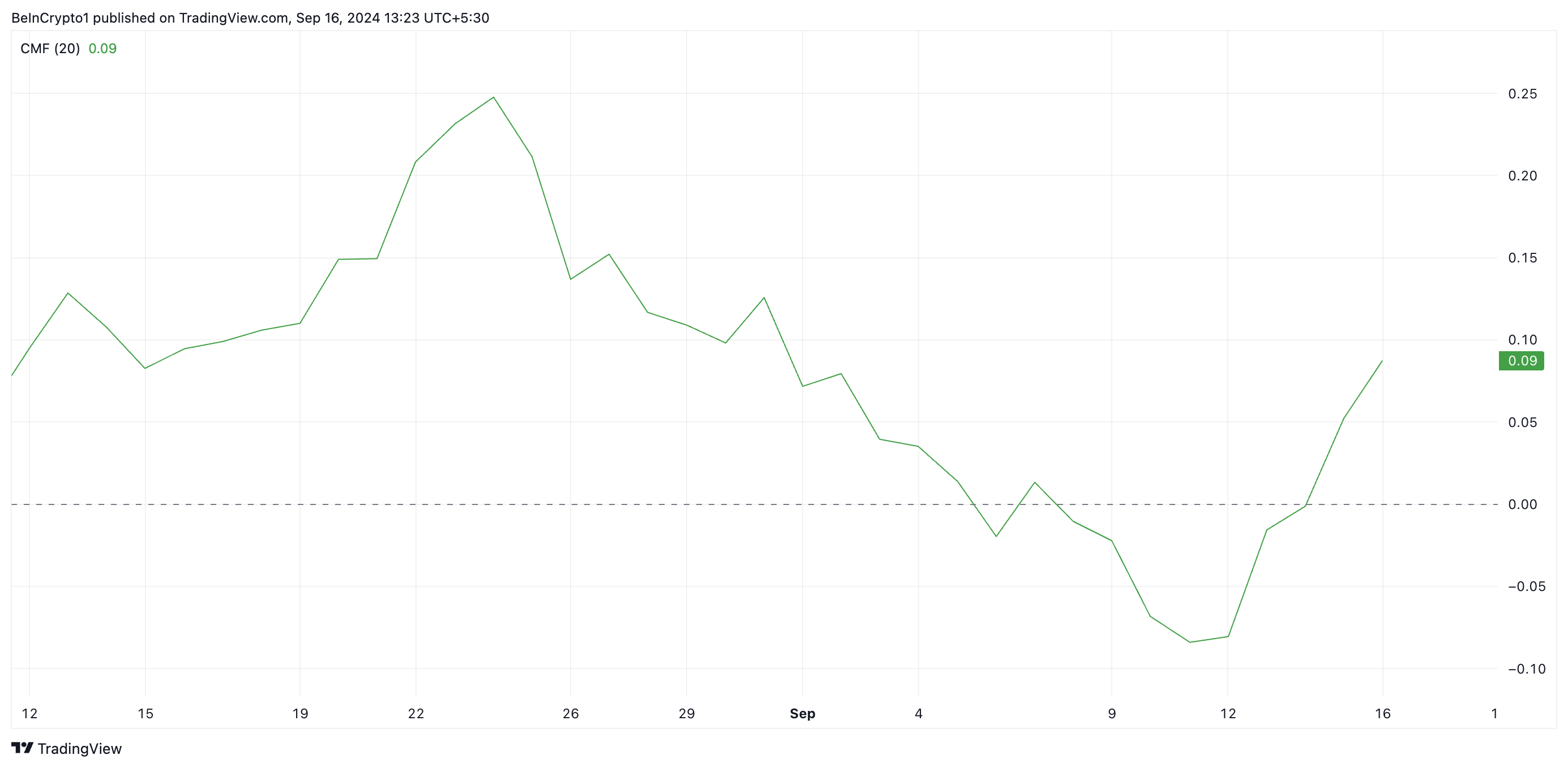 Interessant is dat, terwijl BNB binnen een bereik consolideert, zijn Chaikin Money Flow (CMF), die de geldstroom naar en van het activum meet, is gestegen, waardoor een bullish divergentie wordt gevormd