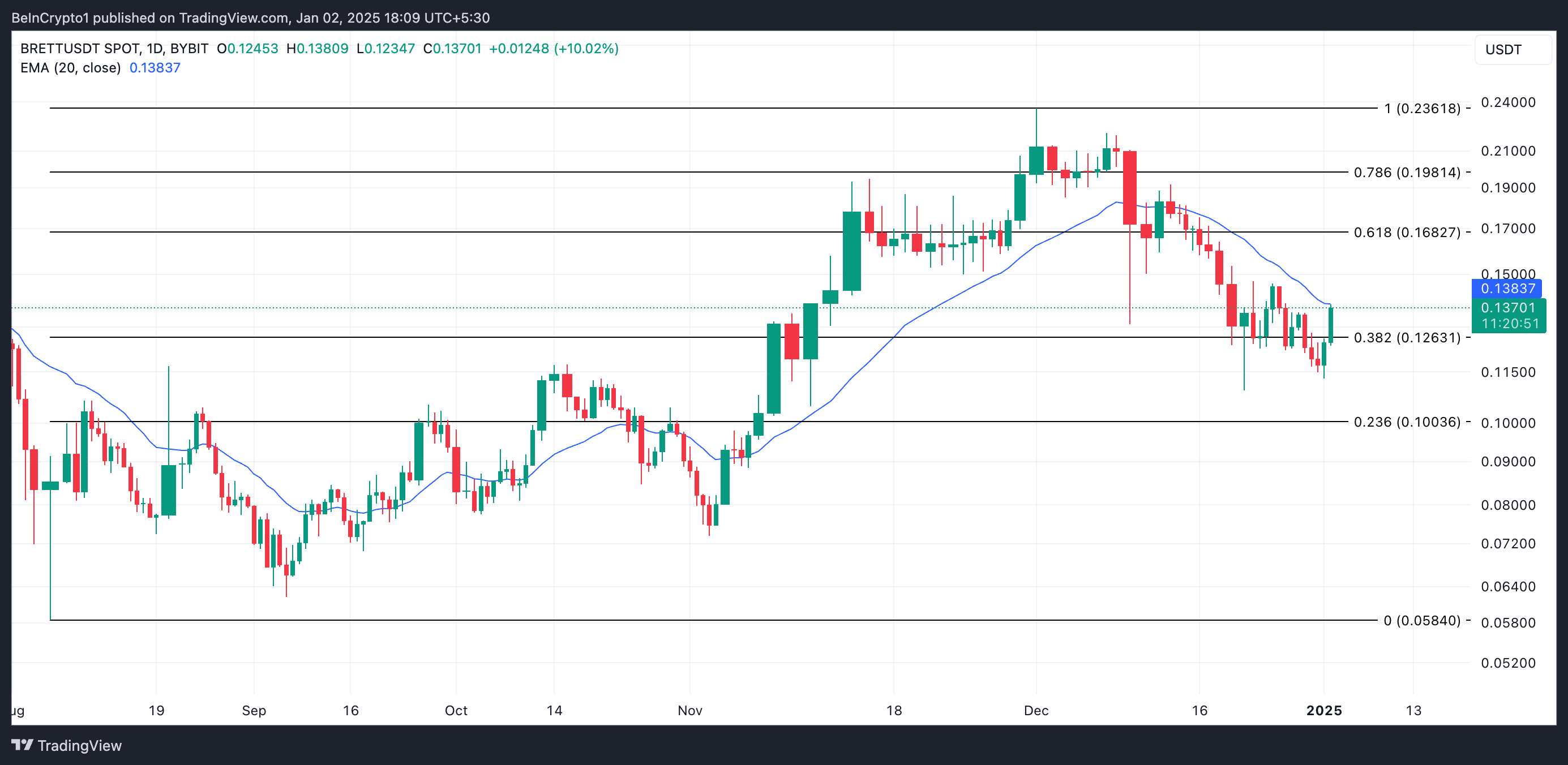 BRETT 20-daagse EMA. Bron: TradingView