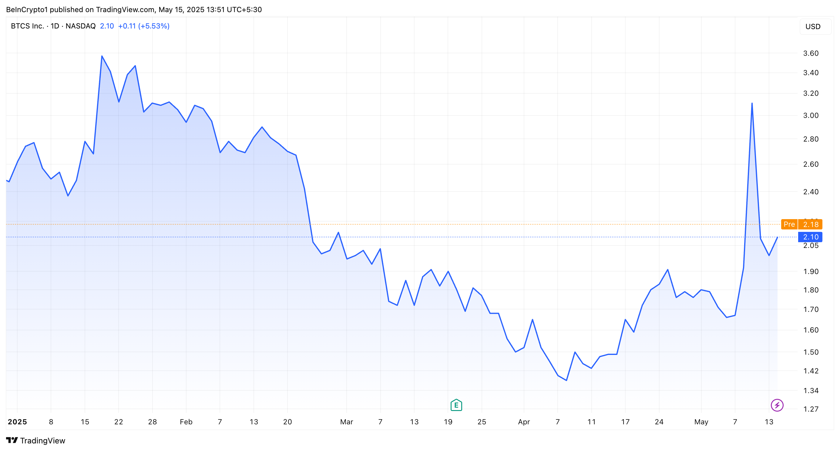 Hoewel Ethereum niet profiteerde van het nieuws van BTCS, deed de eigen aandelenkoers dat wel. Dit weerspiegelde het vertrouwen van investeerders in de strategische koerswijziging van het bedrijf.