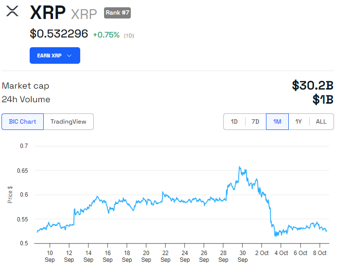 Volgens gegevens van BeInCrypto wordt XRP momenteel verhandeld voor $0,53, wat een bescheiden stijging van 0,75% weerspiegelt in de laatste 24 uur.