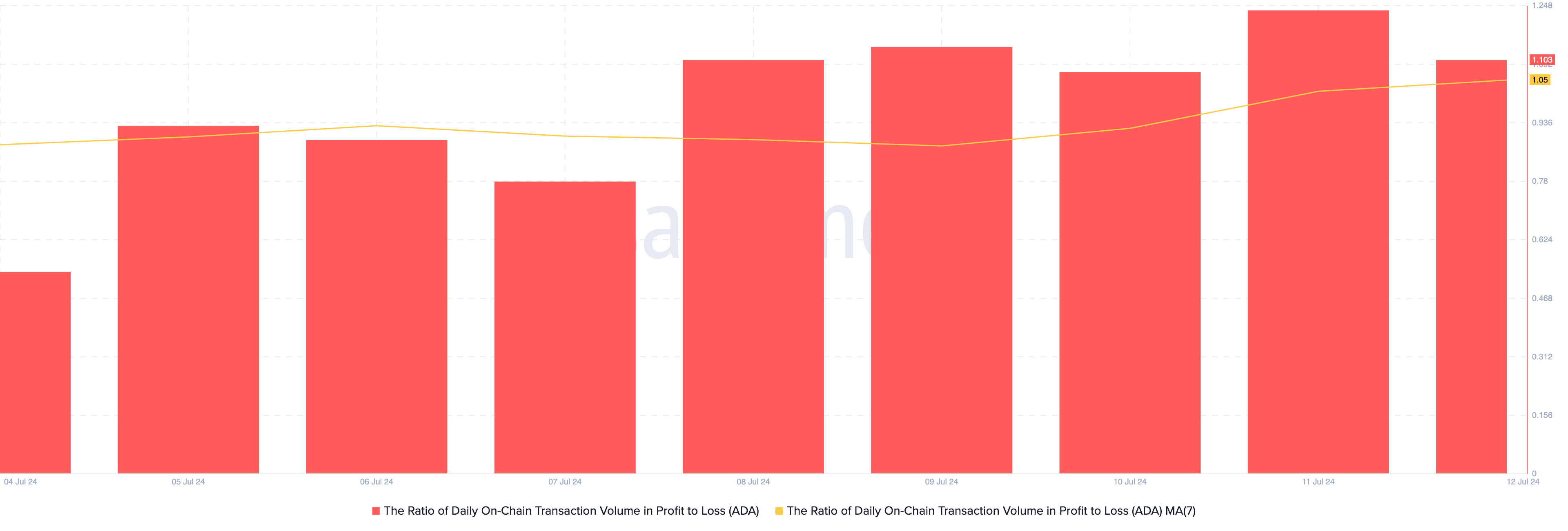 ADA’s ratio van 1,05 geeft aan dat er in de afgelopen week voor elke transactie die resulteerde in een verlies, gemiddeld 1,05 transacties winst opleverden. Dit betekent dat er meer winstgevende transacties waren dan transacties die resulteerden in verlies.