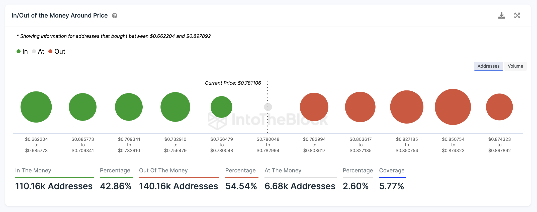 Omgekeerd wordt ADA geconfronteerd met potentiële weerstand, met 140.16K adressen ‘Out of the Money,’ die hebben ingekocht op hogere koerspunten tot $0,89.