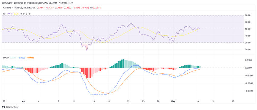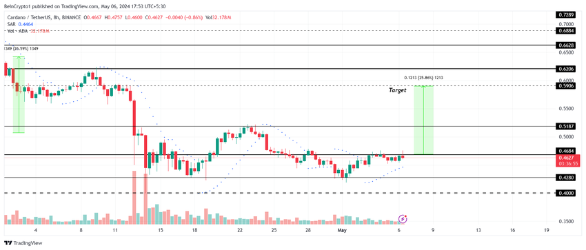 De Cardano koers die handelt op $0,462 is net onder de weerstand van $0,468 na het stuiteren van de steun op $0,428.