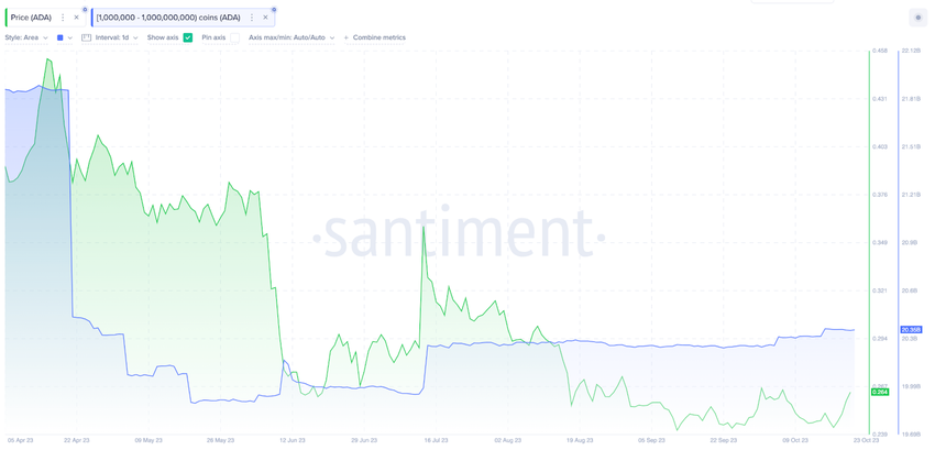 Maar sinds begin oktober hebben de whales 110 miljoen ADA coins verworven, waardoor hun saldo voor het eerst sinds juli 2023 boven de 20,35 miljard uitkomt.