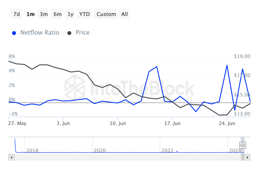 Dit is toe te schrijven aan de huidige koers van LINK. Op het moment van schrijven handelt de altcoin op $14,31. De waarde is de afgelopen maand met 21% gedaald.