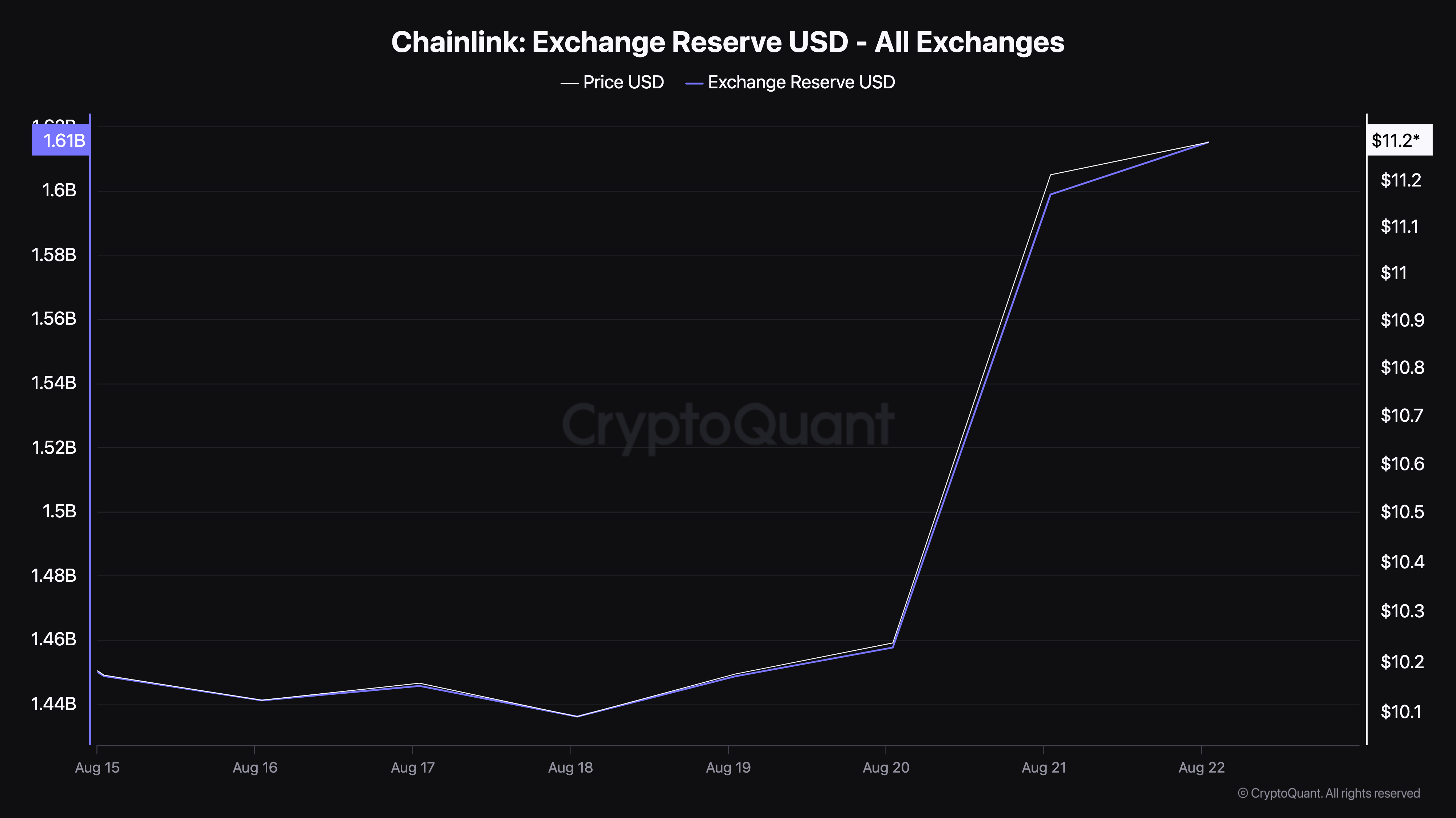 De reserve van de altcoin op beurzen heeft het hoogste niveau bereikt sinds 4 augustus. Deze metriek, die de totale waarde van cryptocurrencies op beurzen volgt, wijst doorgaans op potentiële verkoopdruk wanneer deze toeneemt.