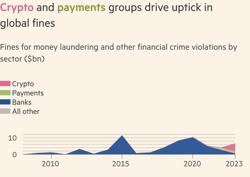 Het gebruik van Bitcoin voor het witwassen van criminele opbrengsten is in 2023 door autoriteiten wereldwijd onder de loep genomen. Vorig jaar rekenden ze digitale betalings- en cryptobedrijven zo’n $5 miljard aan voor verschillende tekortkomingen op het gebied van witwaspraktijken. Crypto-exchange Binance kreeg het zwaarst te verduren, met een boete van $ 4,3 miljard van Amerikaanse toezichthouders.