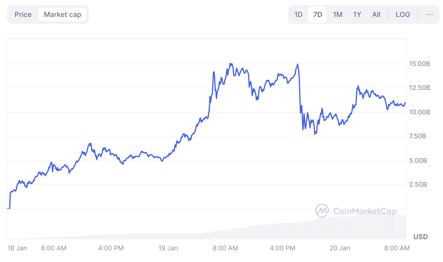 In minder dan twee dagen schoot de Trump coin omhoog naar een piek marktkapitalisatie van ongeveer $15 miljard. Dat maakte het een van de snelst groeiende coins in de crypto-geschiedenis. Dit explosieve succes zou op zijn beurt een nieuwe golf van politieke meme coins kunnen ontketenen, en zichzelf vestigen als een van de grootste narratives in crypto.