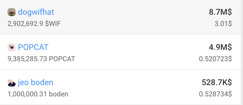 Vervolgens boekte paulo.sol vergelijkbaar succes met WIF en BODEN, met winsten van respectievelijk $9,51 miljoen en $7,04 miljoen. Momenteel heeft hij 1 miljoen BODEN ter waarde van $528.700 en 2,9 miljoen WIF ter waarde van $8,7 miljoen.