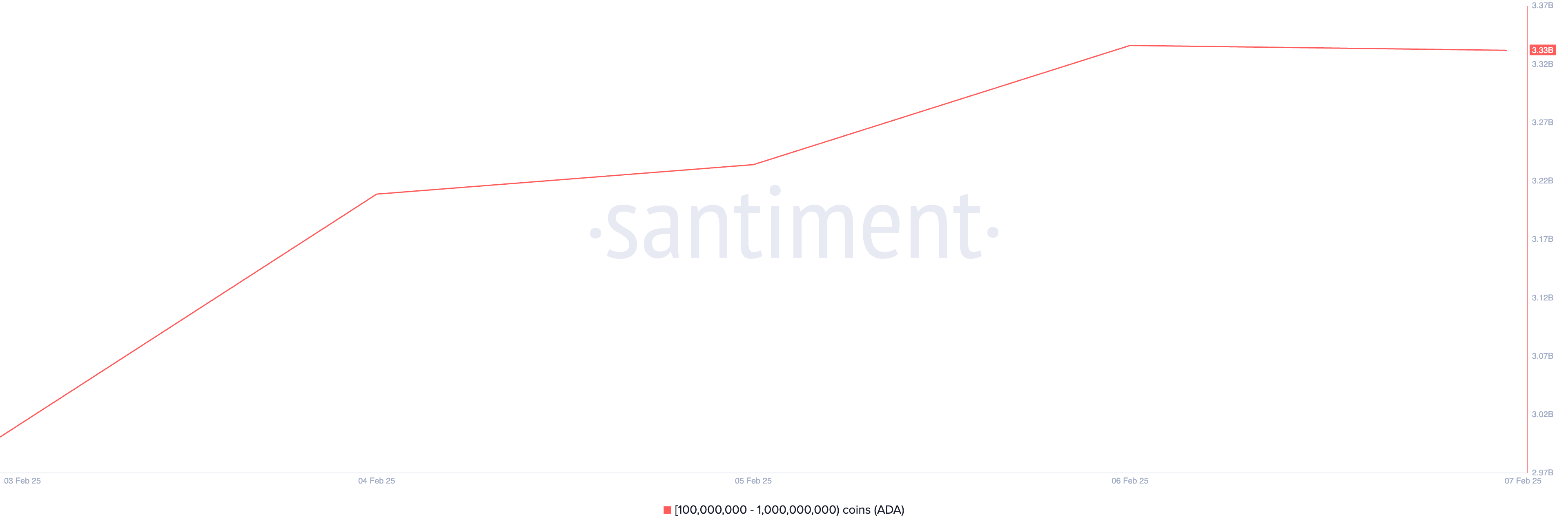 Deze week is layer-1 (L1) coin ADA ook een topkeuze onder crypto whales. Volgens Santiment hebben ADA grote investeerders met tussen de 100 miljoen en 1 miljard coins 330 miljoen ADA ter waarde van meer dan $230 miljoen verzameld in de afgelopen zeven dagen.