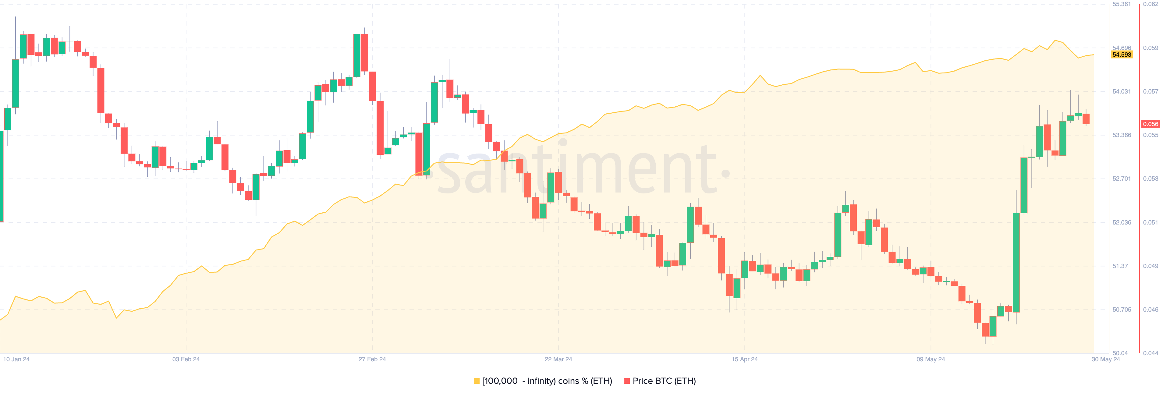 Wallets met meer dan 100.000 ETH hebben hun holdings verhoogd met meer dan 4% van de totale circulerende ETH-voorraad in de afgelopen 4 maanden, wat een sterke accumulatie en vertrouwen in de cryptomunt aantoont.