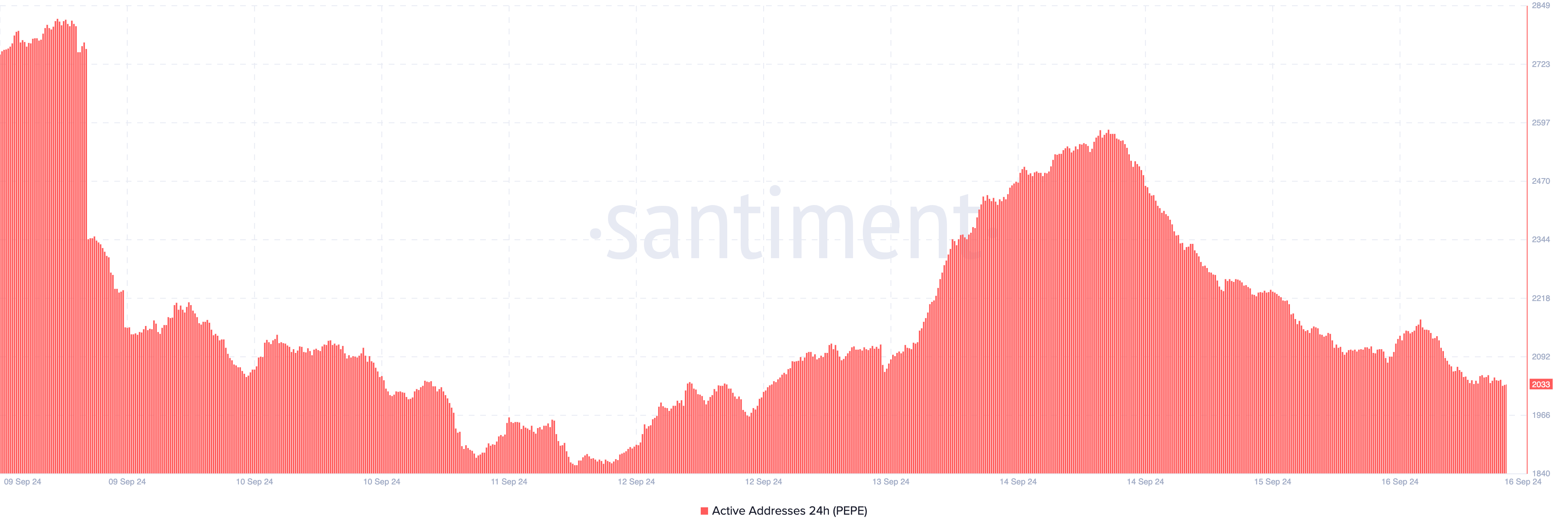 Hoewel whales aanvankelijk grote hoeveelheden van de meme coin kochten, stagneerde de accumulatie rond 13 september. Sindsdien is er nauwelijks een toename geweest in tokens gekocht door grote houders. Dit kan ertoe leiden dat PEPE moeite heeft om een grote koersdaling te voorkomen.