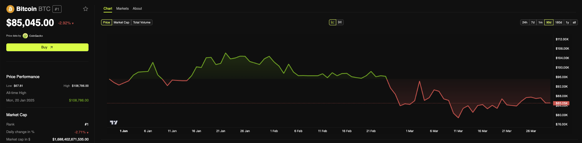 Max Shannon daarentegen blijft voorzichtiger over de onmiddellijke toekomst van Bitcoin. Hij voorspelt dat Bitcoin in het tweede kwartaal binnen een brede range van $70.000 tot $90.000 zal blijven handelen, beperkt door aanhoudende tariefproblemen.