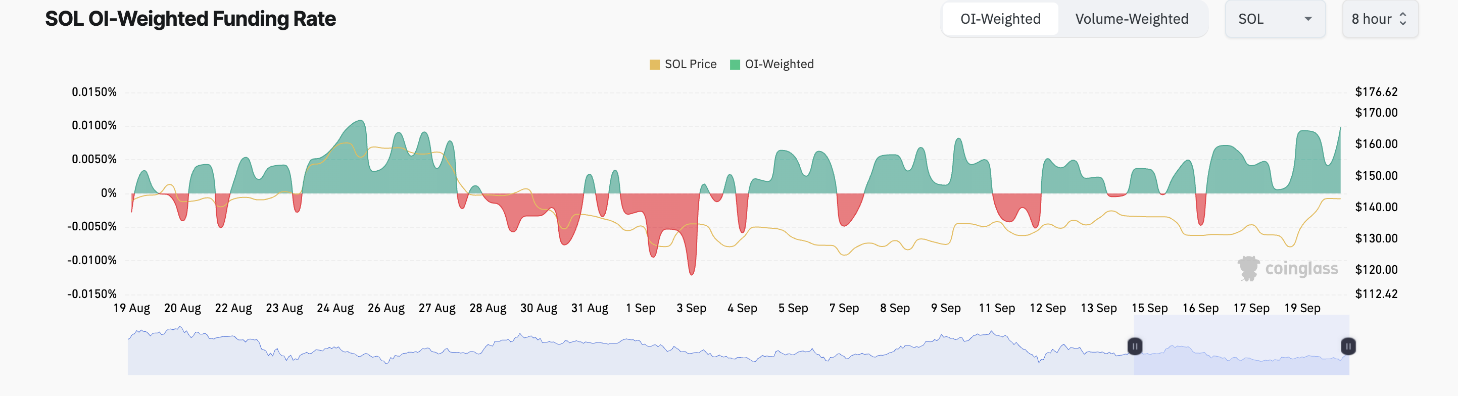 Dit is duidelijk geworden doordat de geaggregeerde funding rate van SOL naar het hoogste niveau in bijna 30 dagen is gestegen. Momenteel staat de funding rate van de coin — een periodieke vergoeding die wordt betaald om de contractprijs in lijn te houden met de spotprijs — op 0,0098%. Dit duidt op een toegenomen vraag naar longposities onder deelnemers aan de futuresmarkt van SOL.