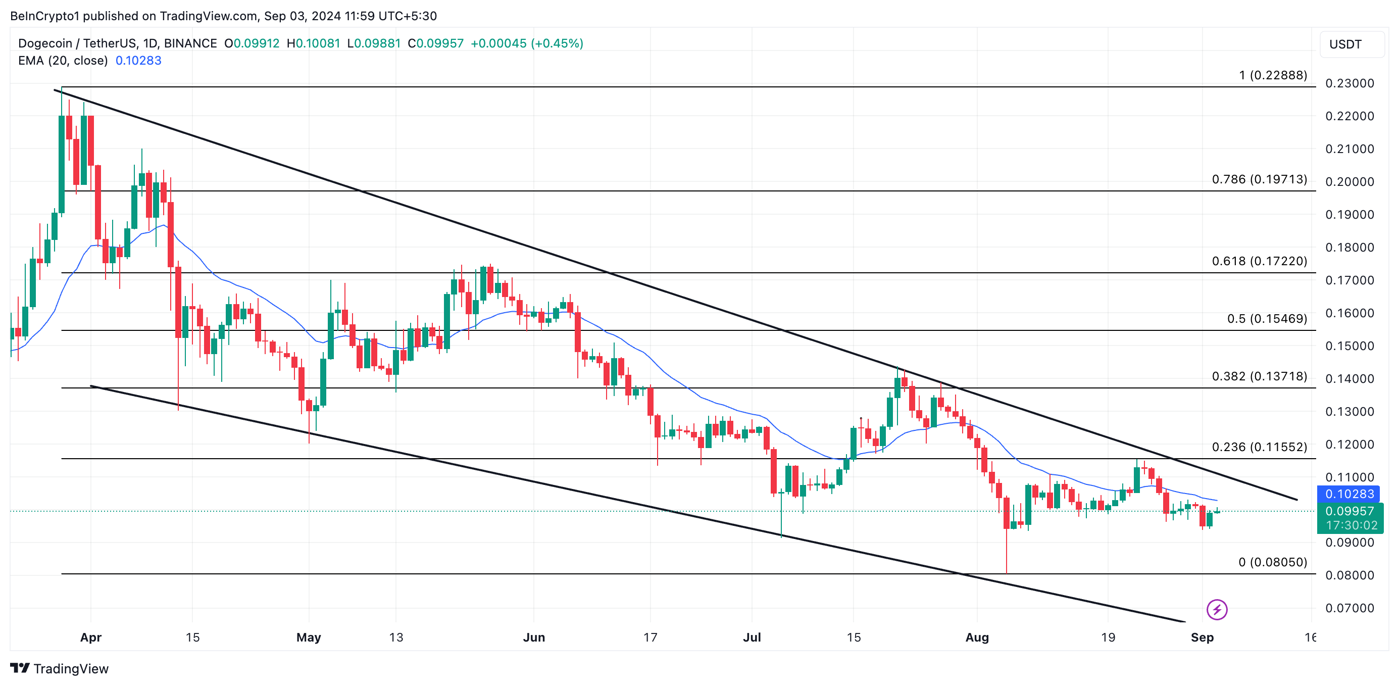 Echter, als de verkoopdruk blijft toenemen, zal de toonaangevende meme coin zijn laagste punt van 5 augustus van $0.08 opnieuw bezoeken.