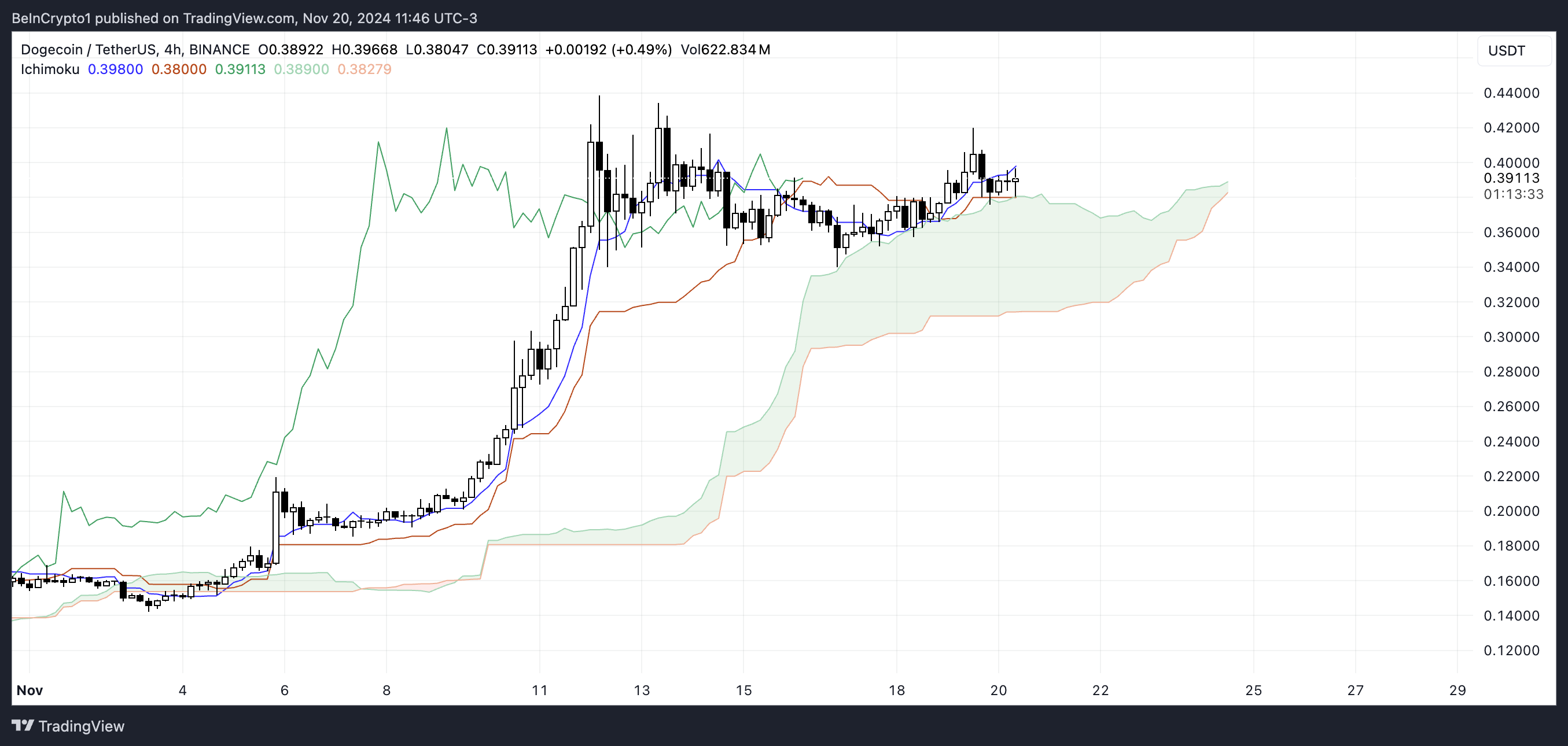 SponsoredDOGE Ichimoku Cloud toont bullish signaal