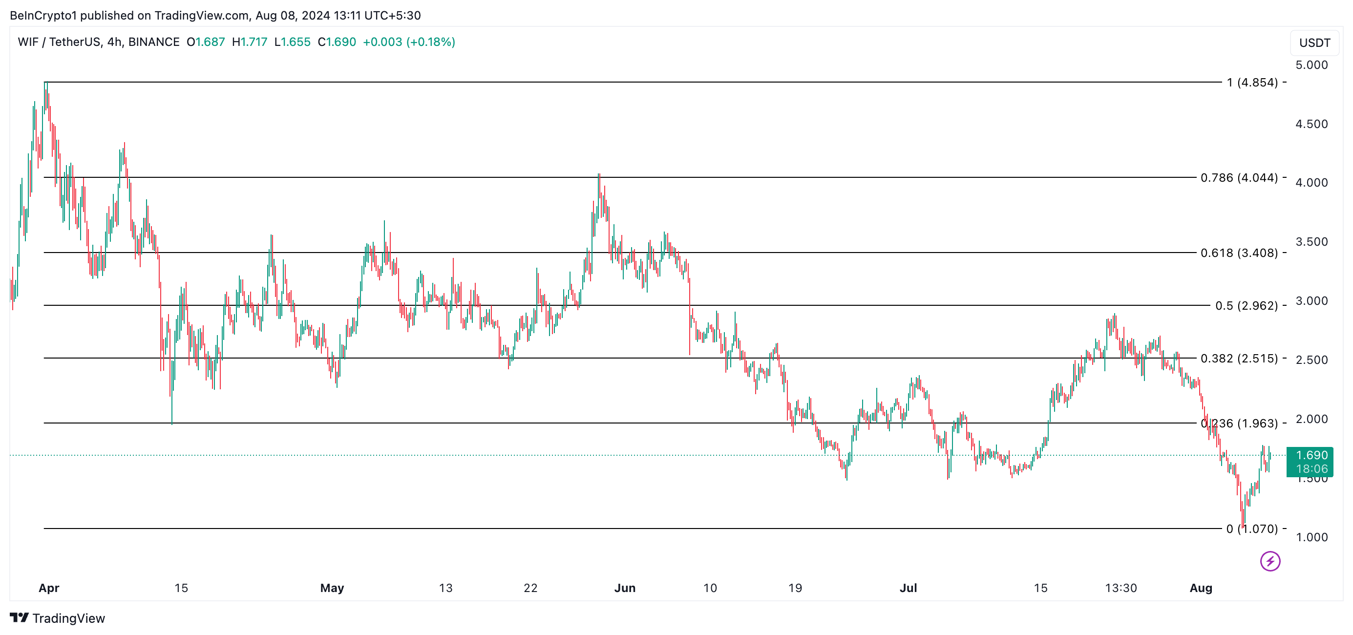 Op dit moment handelt WIF voor $1,70. Zijn waarde is sinds de high van $1,77 op woensdag met 3% gedaald. Ondanks de kleine koersdaling, is WIF klaar om zijn rally voort te zetten.