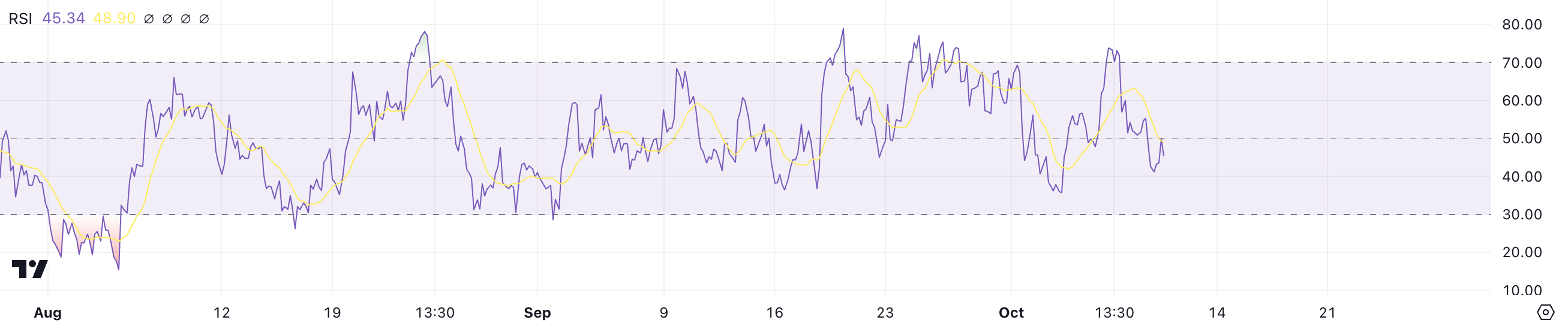 De Relative Strength Index (RSI) meet de snelheid en verandering van koersbewegingen en geeft aan of een asset overbought of oversold is. De index varieert van 0 tot 100, waarbij waarden boven de 70 duiden op overbought omstandigheden, wat kan wijzen op een mogelijke pullback, terwijl waarden onder de 30 wijzen op oversold-omstandigheden, wat een koopkans kan signaleren.