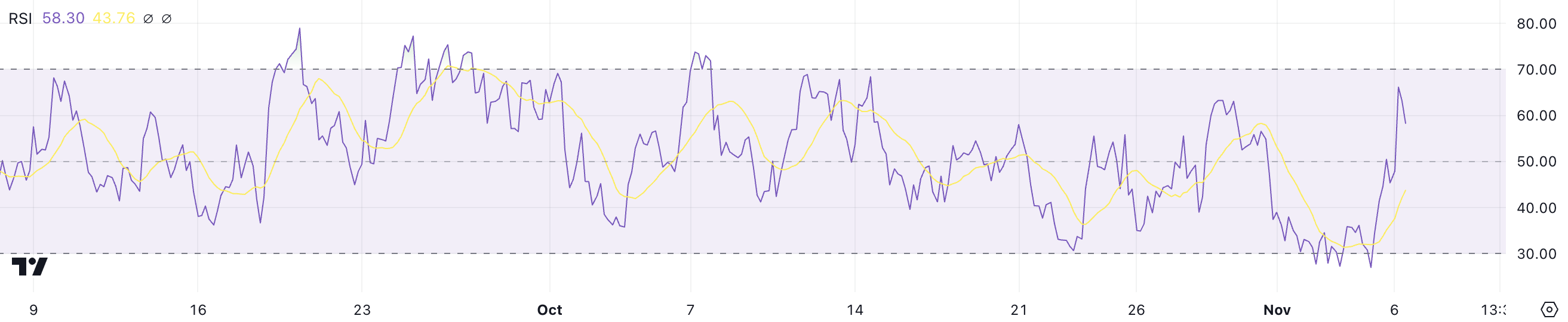 Het is echter belangrijk voor handelaren om de RSI nauwlettend in de gaten te houden; als deze 70 nadert, kan er een grotere kans zijn op een prijscorrectie omdat de koopdruk zijn piek bereikt.