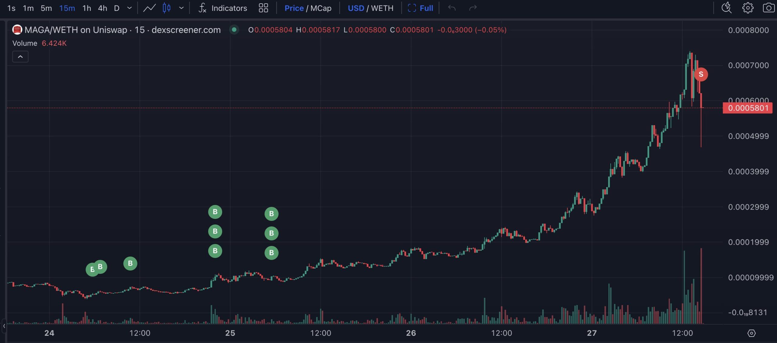 MAGA koers prestaties. Bron: DEX Screener