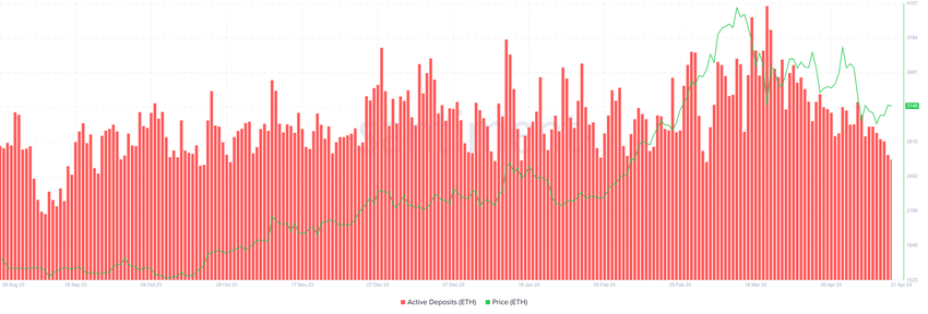 Dit is duidelijk te zien aan de plotselinge daling van de actieve stortingen op het netwerk. Actieve stortingen geven de intentie van investeerders aan om hun assets te verkopen om winst te maken of verliezen te compenseren.