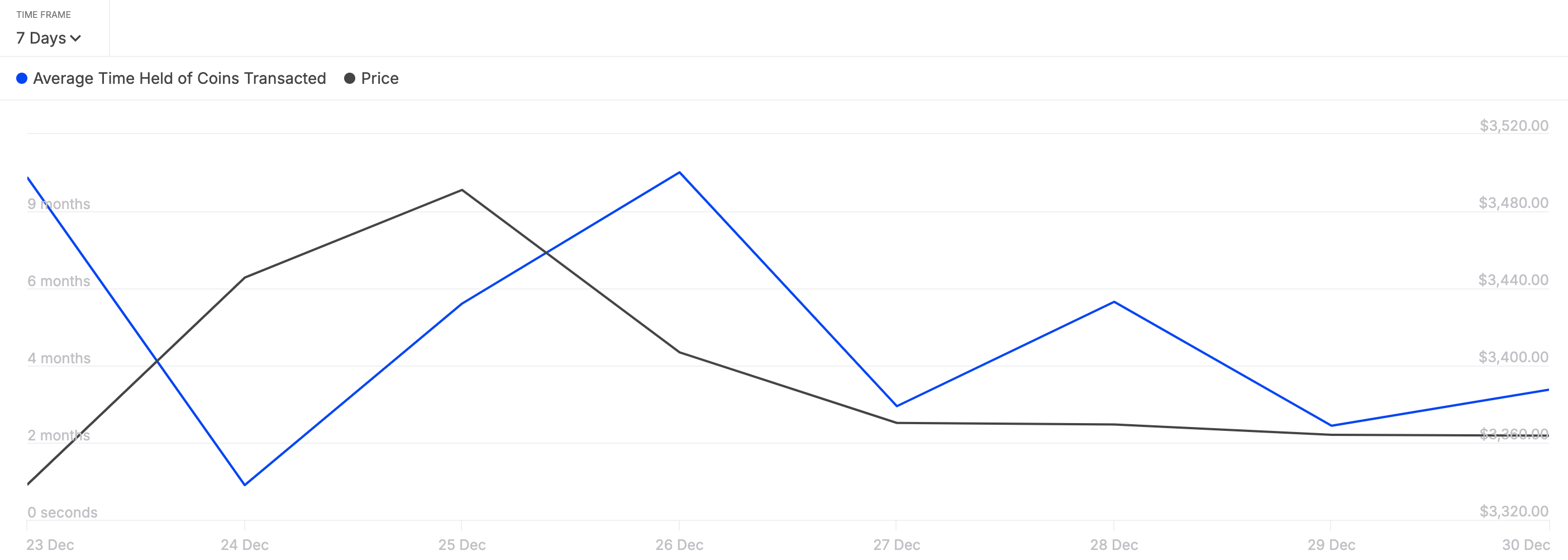 Op 30 december daalde de ETH koers onder de $3.400 tijdens een korte consolidatieperiode. Maar op het moment van schrijven is de waarde weer boven die drempel gestegen. Bevindingen tonen aan dat de acties van Ethereum investeerders cruciaal waren voor een snel herstel.