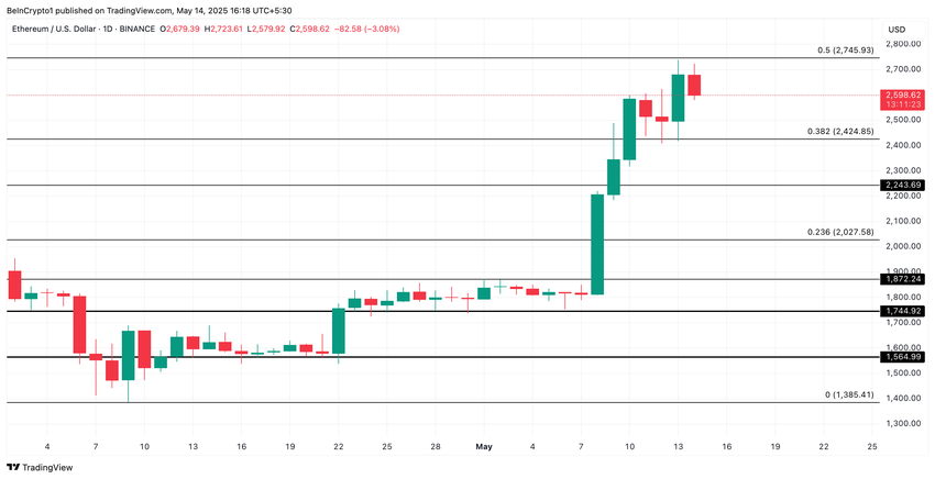 Als de bullish druk echter sterker wordt, zou ETH een nieuwe poging kunnen doen om terug te klimmen naar $2.745.